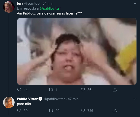 Um seguidor comentou: Ain Pabllo…. para de usar essas laces fe*** e Pabllo prontamente responde: paro não